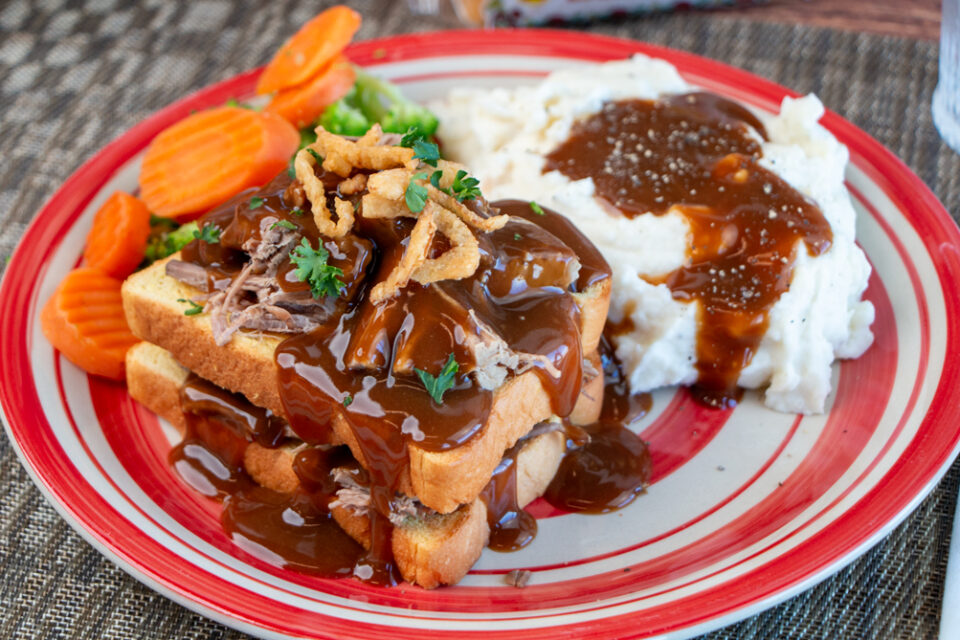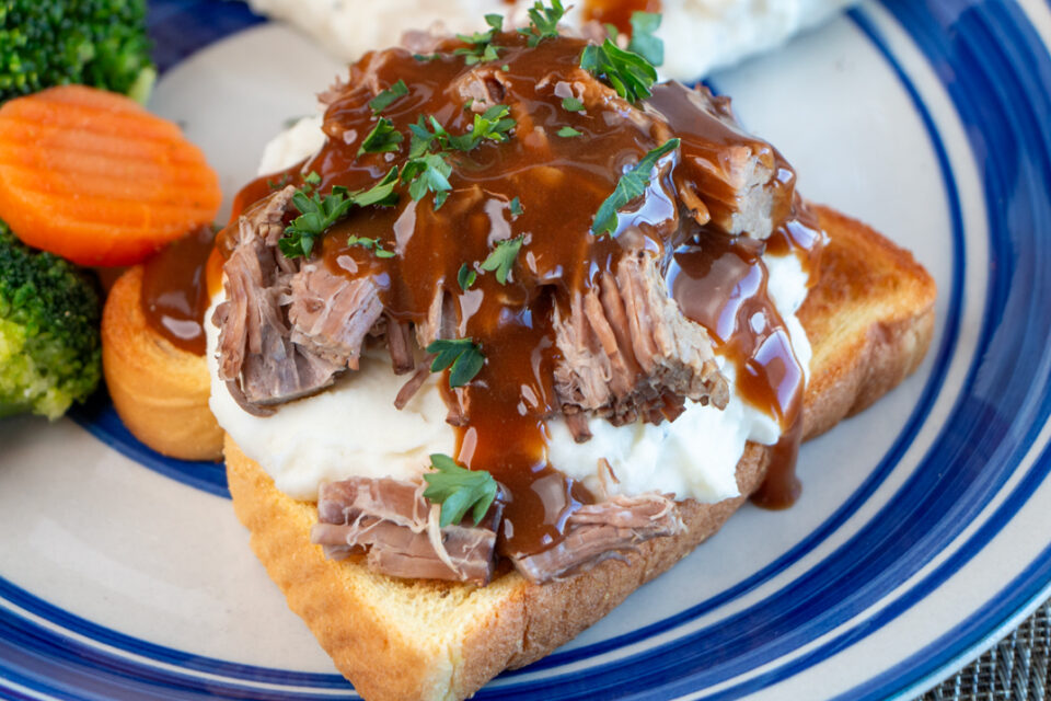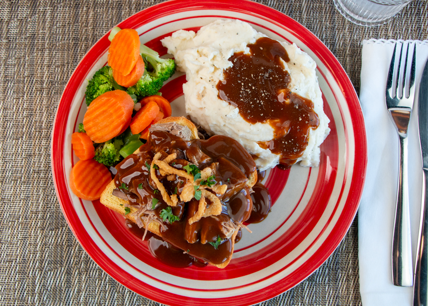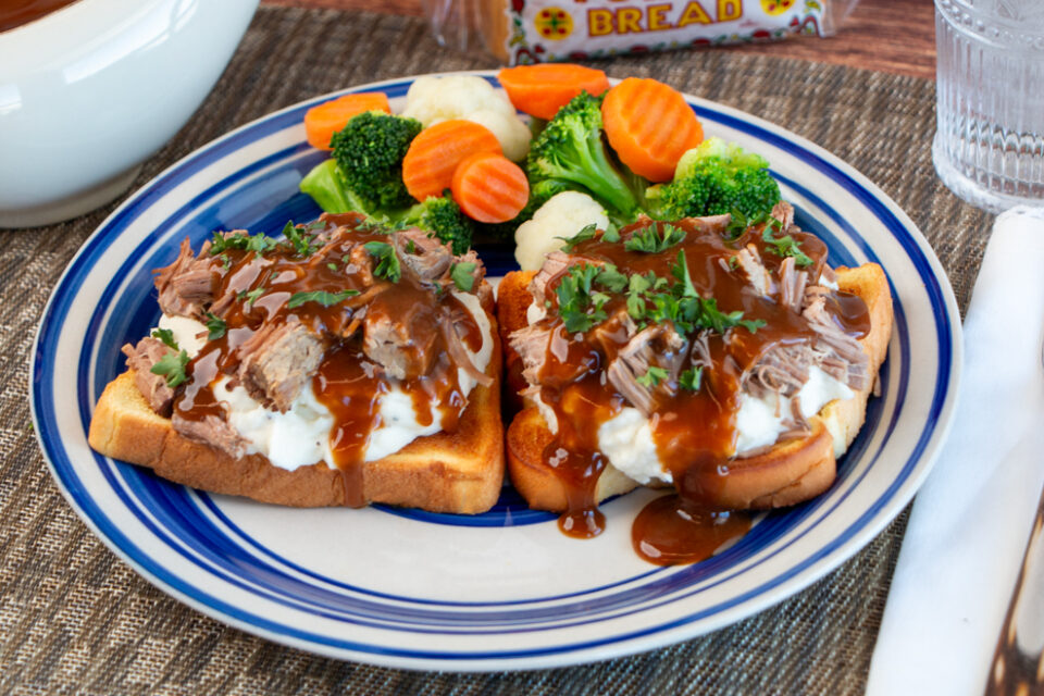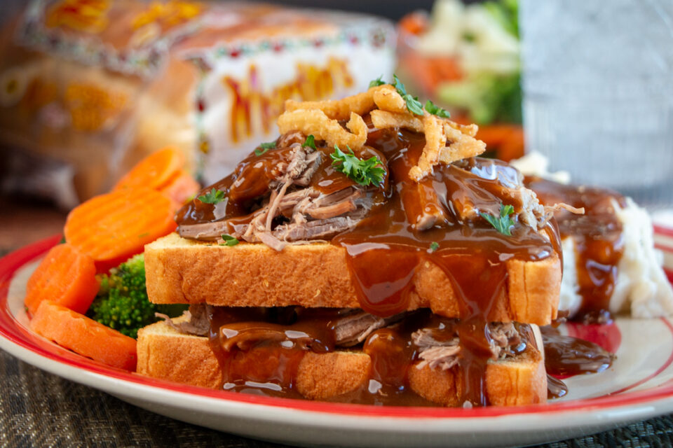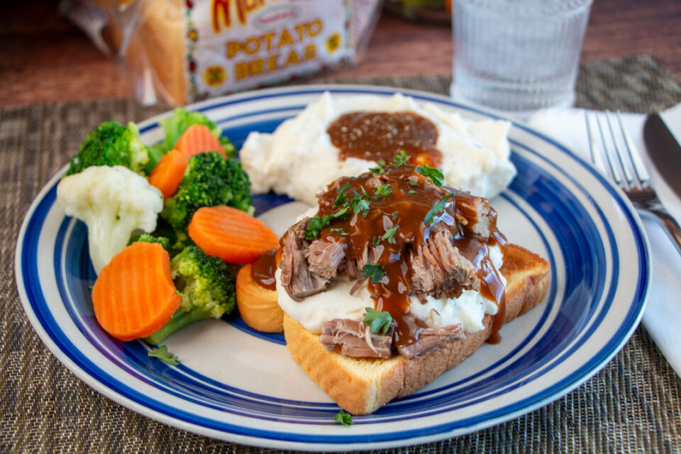 Serve the shredded beef and gravy over Martin’s Potato Bread with mashed potatoes and your favorite vegetable.
