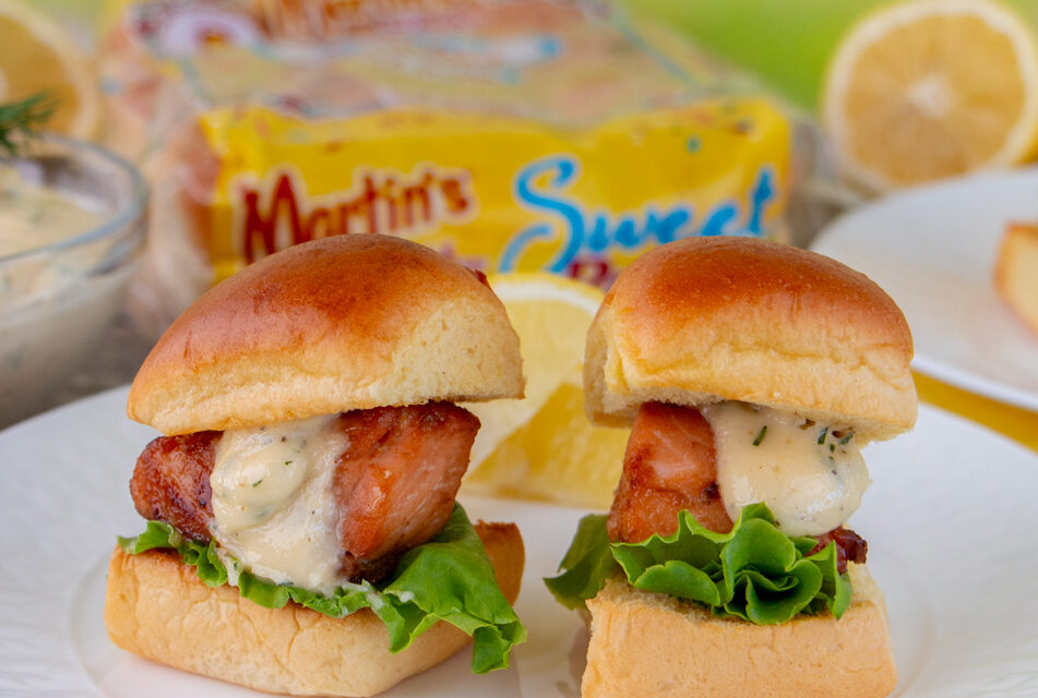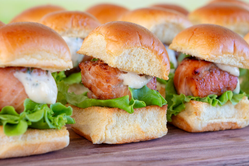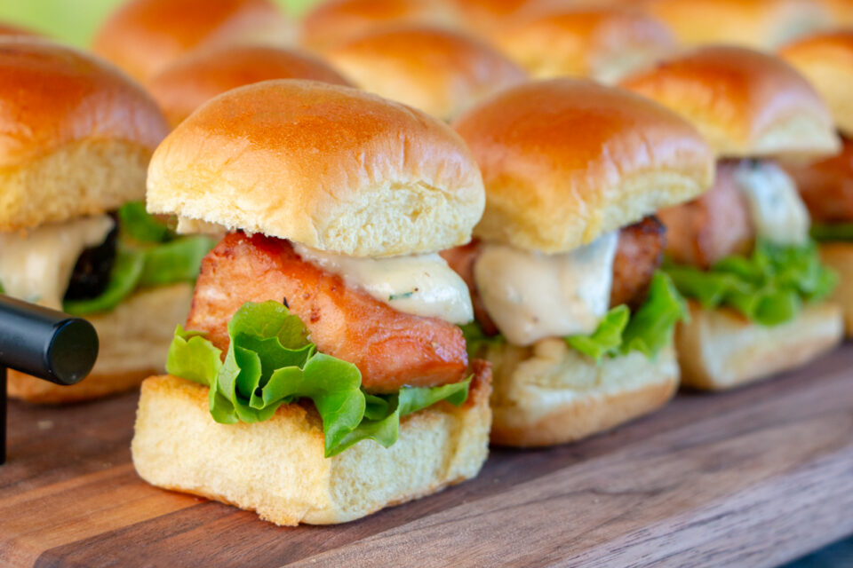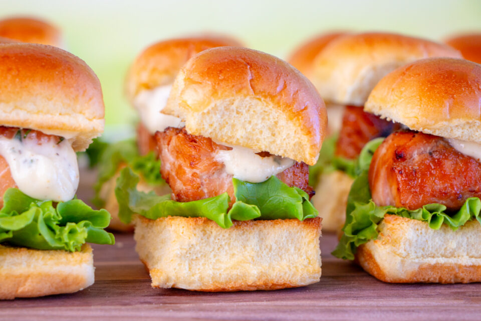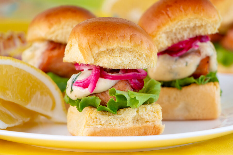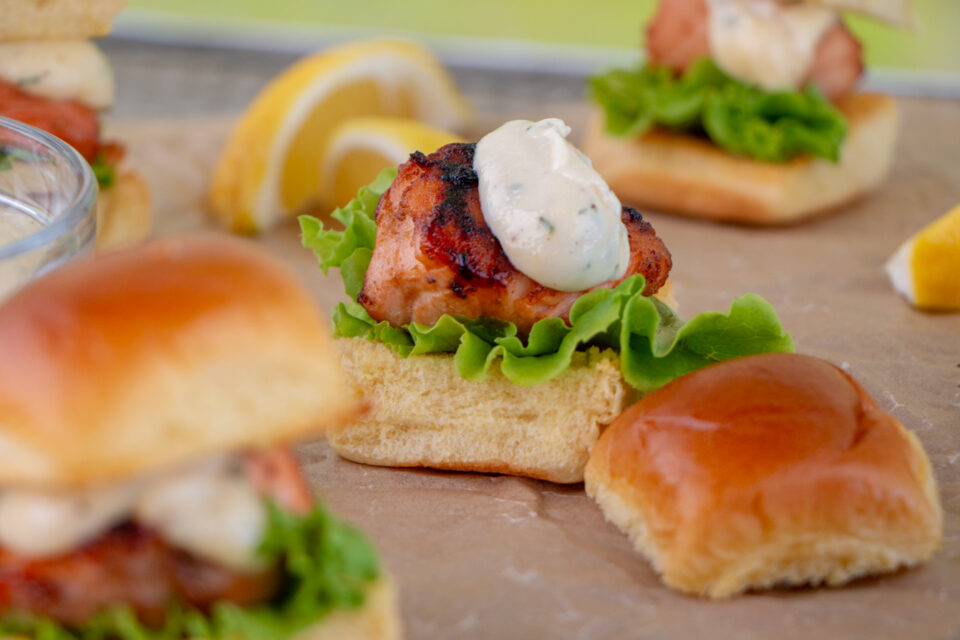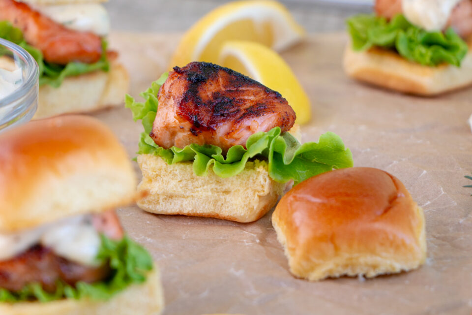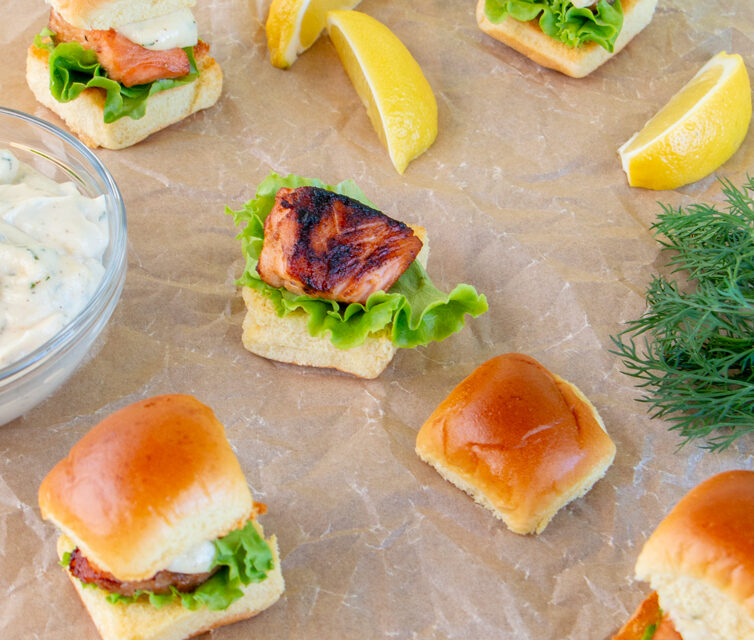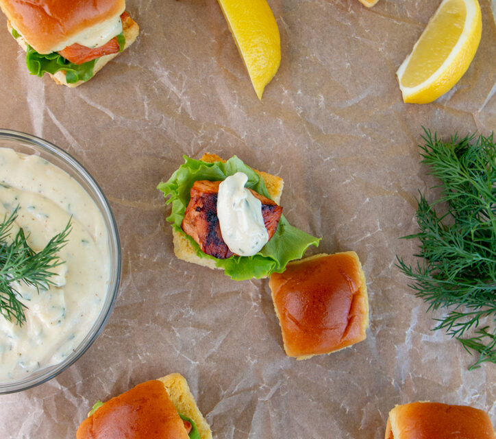 For Sliders: Heat a large skillet over medium heat with a drizzle of olive oil. Working in batches, cook sliders for 3-5 minutes per side. Alternately: cook salmon on oiled grill over medium heat for approximately 5-8 minutes per side (depending on the thickness of your fish). Transfer cooked fish to a platter to rest.